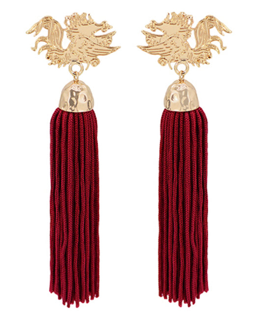 USC Gamecocks Tassel Earrings in Black or Garnet