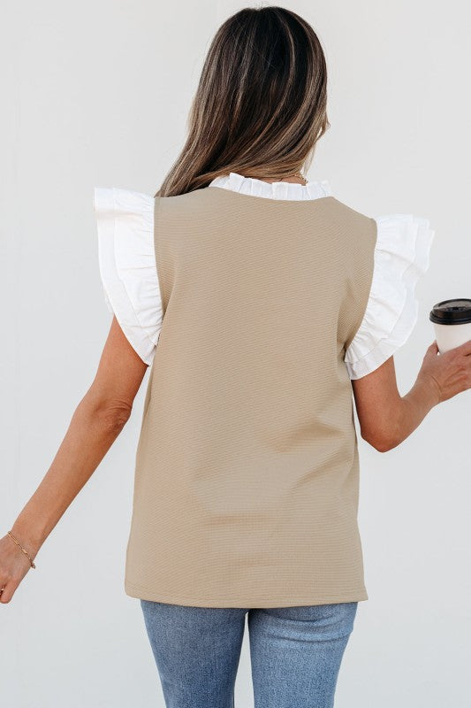 Marilyn Contrast Trim Ruffle Sleeve Knitted Top