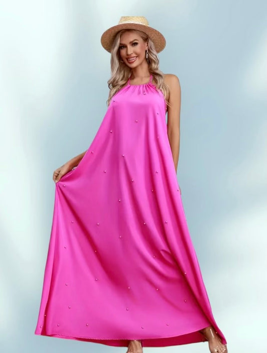Poppy Pink Pearl Beaded Dress